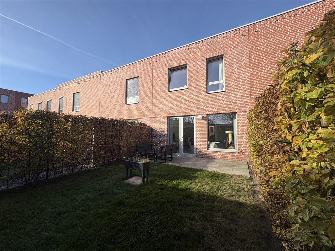 De woning omvat op het gelijkvloers een inkomhal met een gastentoilet, een lichtrijke living met open en uitgeruste keuken, een ruime berging, aanpalend aan de living kan men naar het zonnig terras/tuintje + overdekt deel.