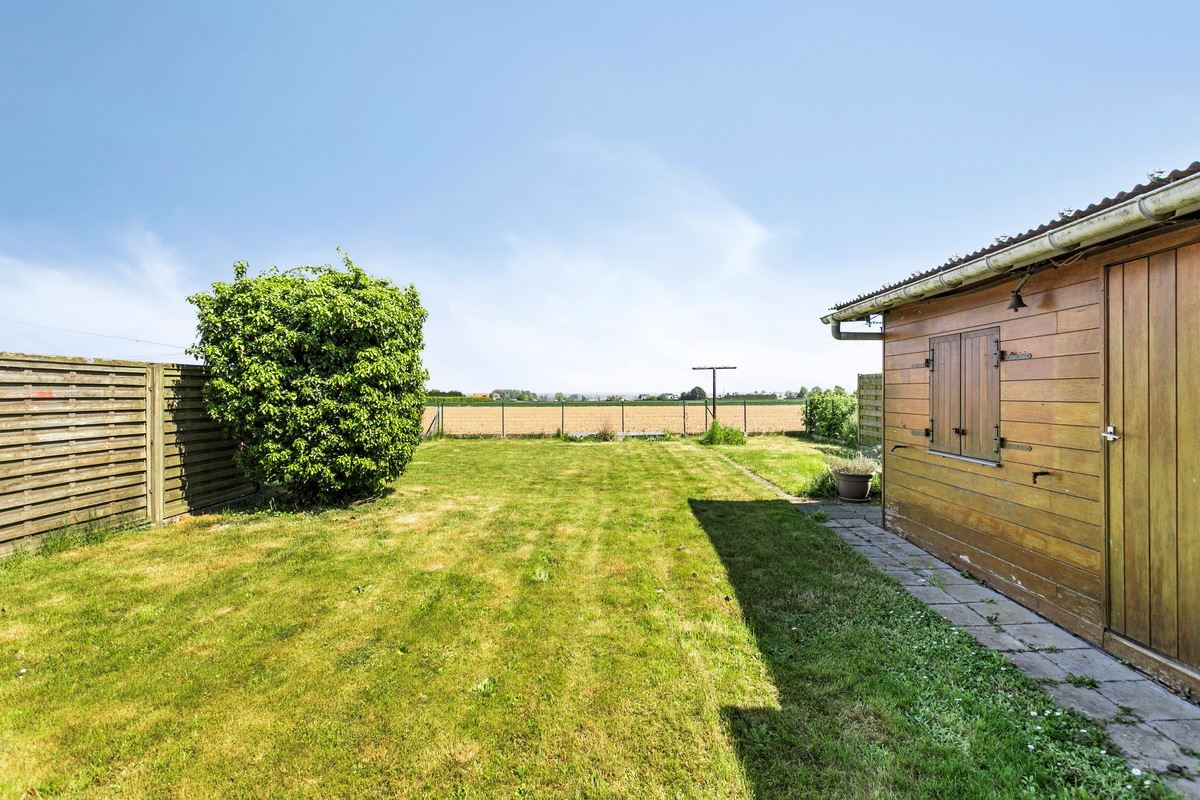 De tuin met mooi vergezicht bestaat uit een gazon en aanhorigheden.