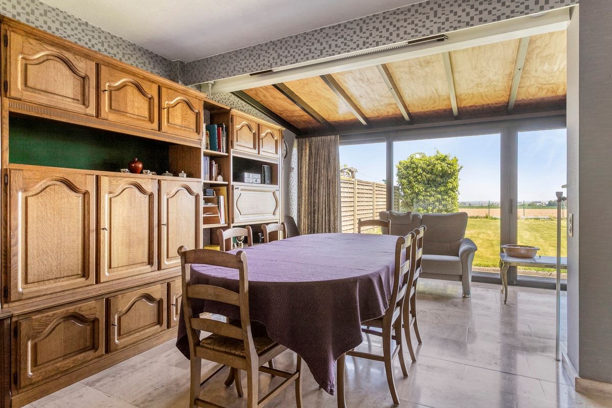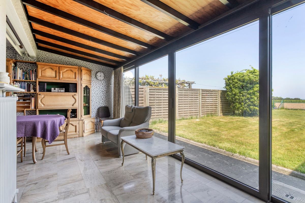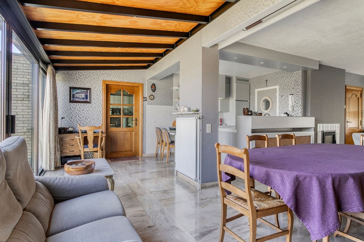 Inkomhal met toilet, ruime lichtrijke living met zithoek, eetplaats en veranda,