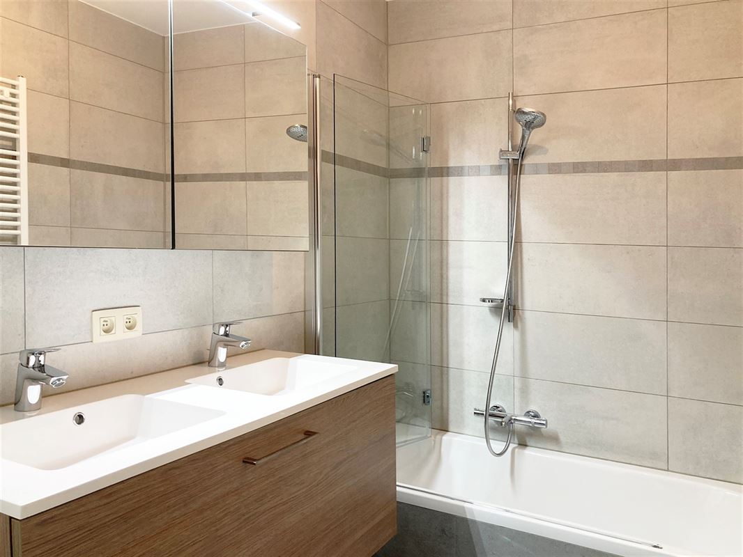 Even een korte rondleiding; binnenkomen doet men via de ruime inkomhal. Daarnaast beschikt het appartement over een gastentoilet, een technische berging, een badkamer uitgerust met een ligbad/douche en een dubbele lavabo, 2 ruime slaapkamers, een lichtrijke living met open keuken en een terras.