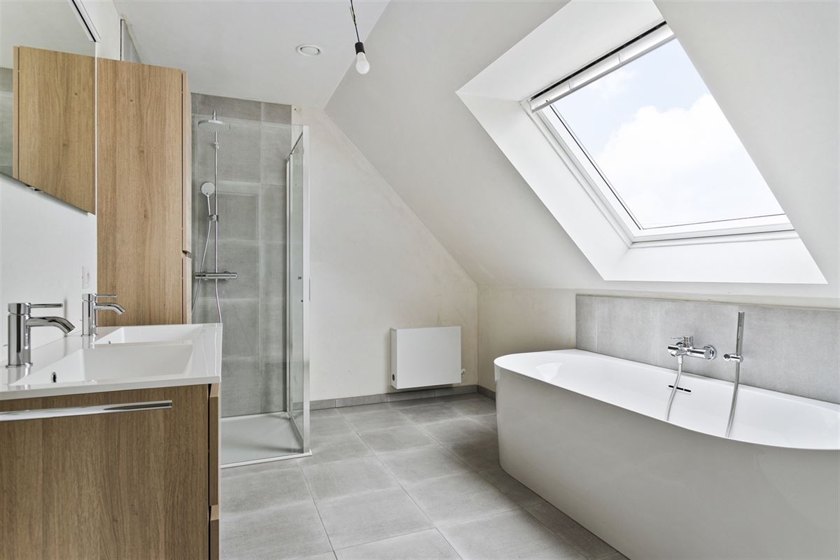 Op de verdieping zijn er drie ruime slaapkamers, een extra berging die perfect kan dienen als dressing, een badkamer met dubbele lavabo, ligbad en douche, en een apart nachttoilet. De ruime zolder biedt bijkomende bergruimte.