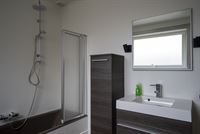 Achter de keuken heb je een apart toilet en de badkamer.