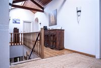 Binnen straalt de woning warmte en elegantie uit dankzij de houten balkenplafonds, parketvloeren, open haard en de grote raampartijen die het omringende groen tot in de leefruimtes brengen. Rondom de villa liggen verschillende terrassen, een zwembad, vijver en een charmante pergola, perfect om te genieten van elk seizoen.