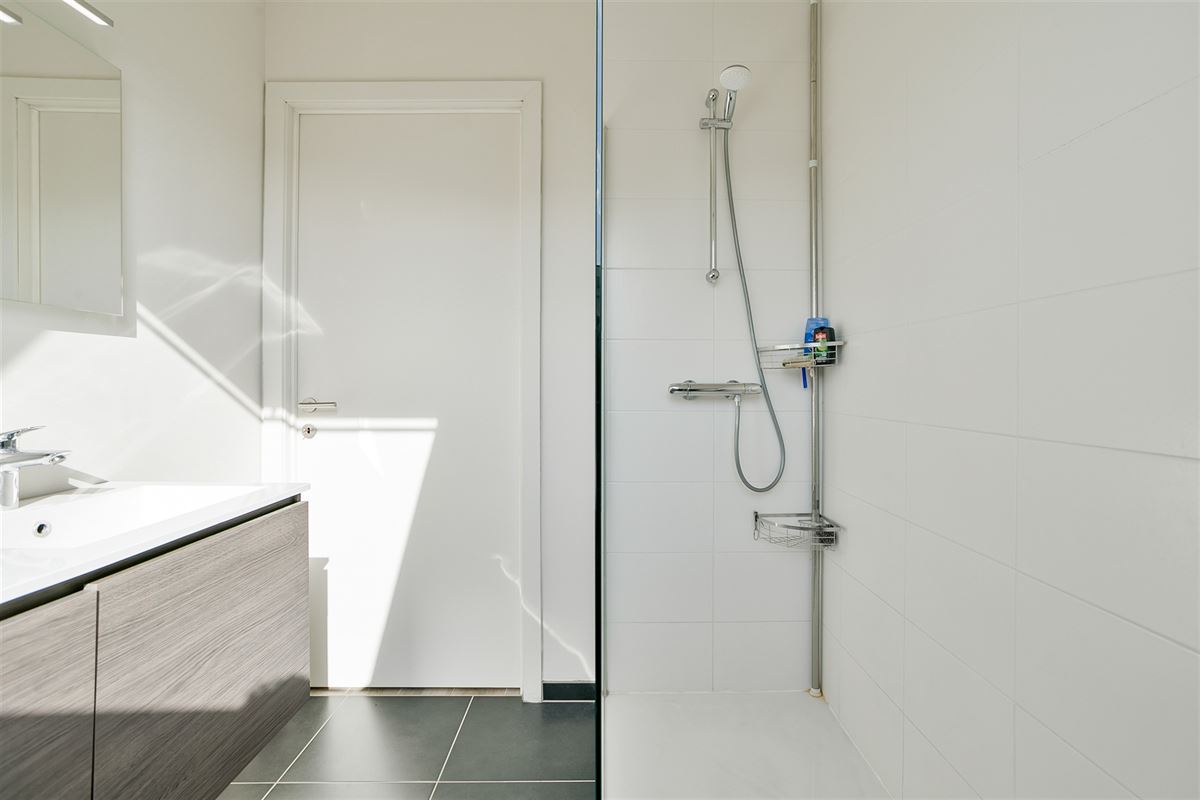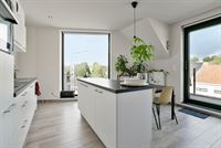Via de inkomhal met gastentoilet kom je in de living met open keuken, die voorzien is van alle toestellen en met uitzicht op het terras.