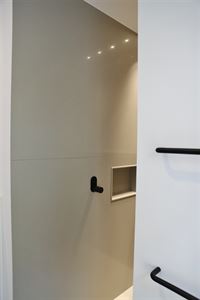 Op de eerste verdieping heb je de badkamer met een fantastisch losstaand bad en inloopdouche uitgewerkt in composiet.