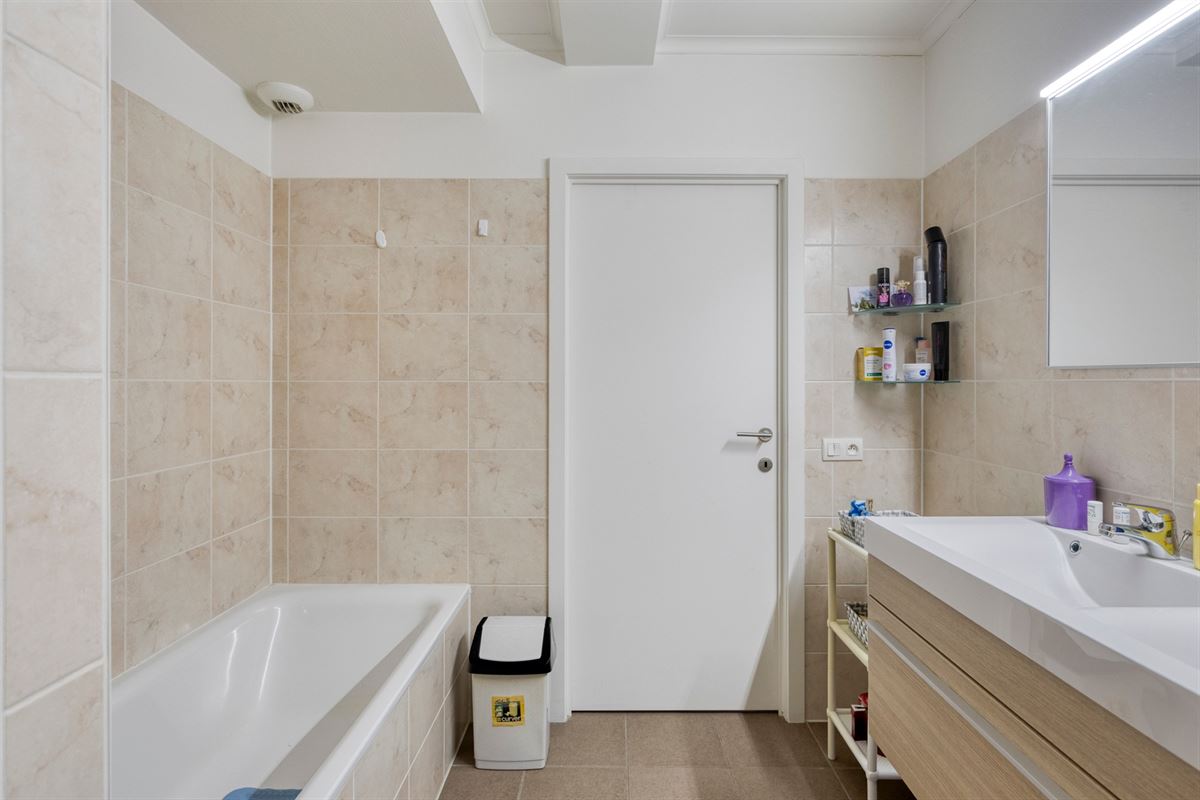 De volledig uitgeruste badkamer is voorzien van een dubbele lavabo, douche én ligbad, wat extra comfort biedt.