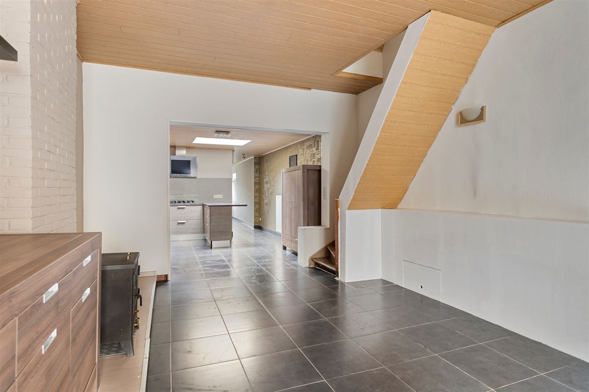 De woning beschikt over een gezellige leefruimte met aansluitend een keuken, vernieuwd in 2013 met alle toestellen en uitgerust met oa combi-microgolf met stoomfunctie (vernieuwd in 2021). Verder vinden we op het gelijkvloers een badkamer met douche, ligbad en toilet(de vloer van de badkamer vraagt nog een beperkte renovatie), evenals een handige berging.