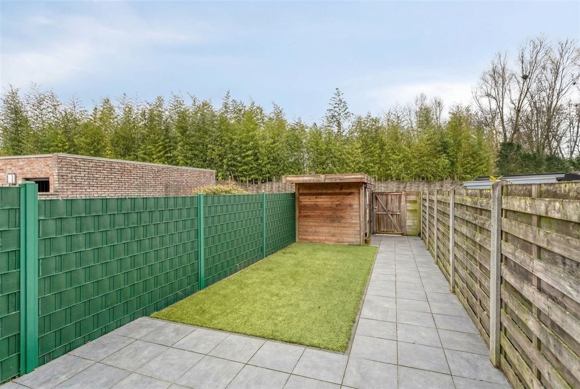 Buiten geniet u van een zongerichte tuin met onderhoudsvriendelijk kunstgras en een tuinhuis. Een extra pluspunt is de achterliggende perceeltoegang met bijkomende parkeerplaats.