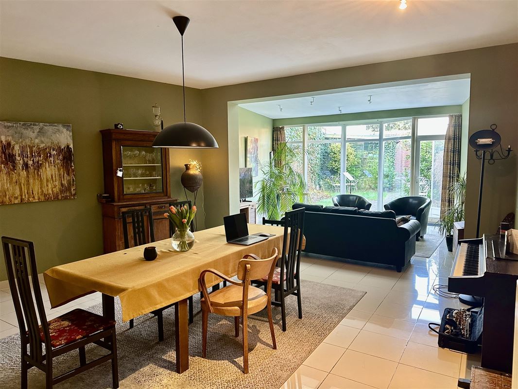 doorlopende living en eetkamer met zicht op de stadstuin + carport