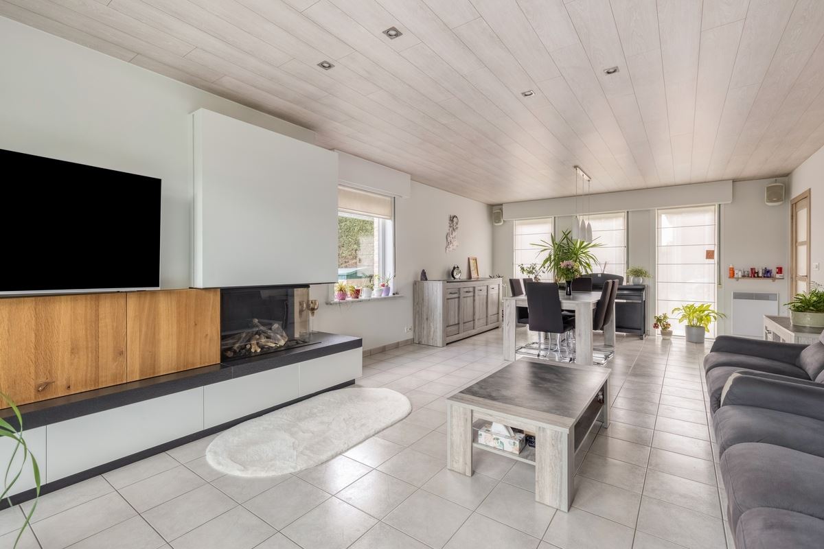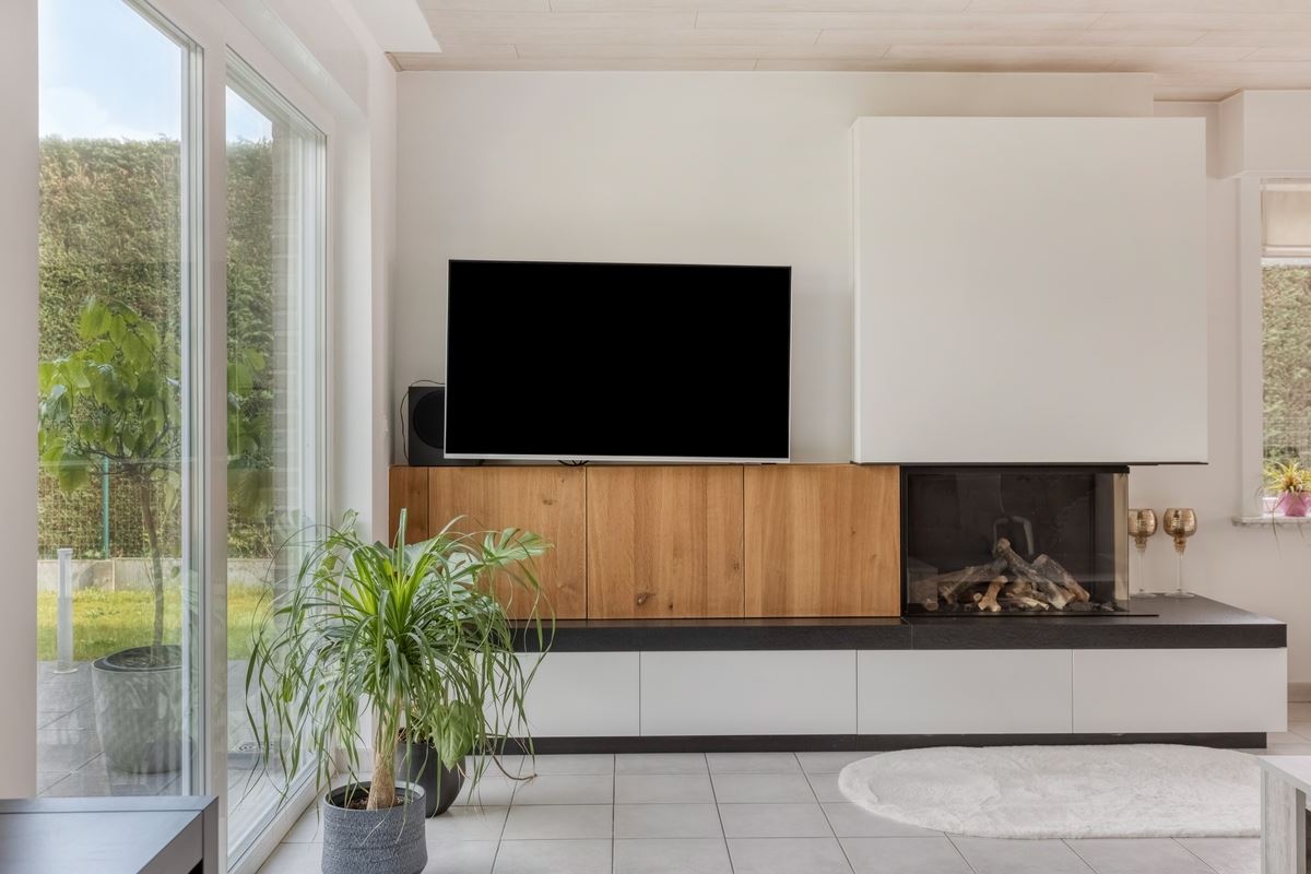 In de living zorgt de haard met stijlvol meubel voor heel wat warmte en stijl.