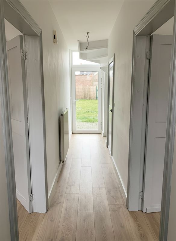 inkom met toegang tot de tuin, lichtrijke woonkamer, volledig ingerichte keuken, hal/wasplaats, afzonderlijk toilet, nachthal, 3 slaapkamers en badkamer met toilet.