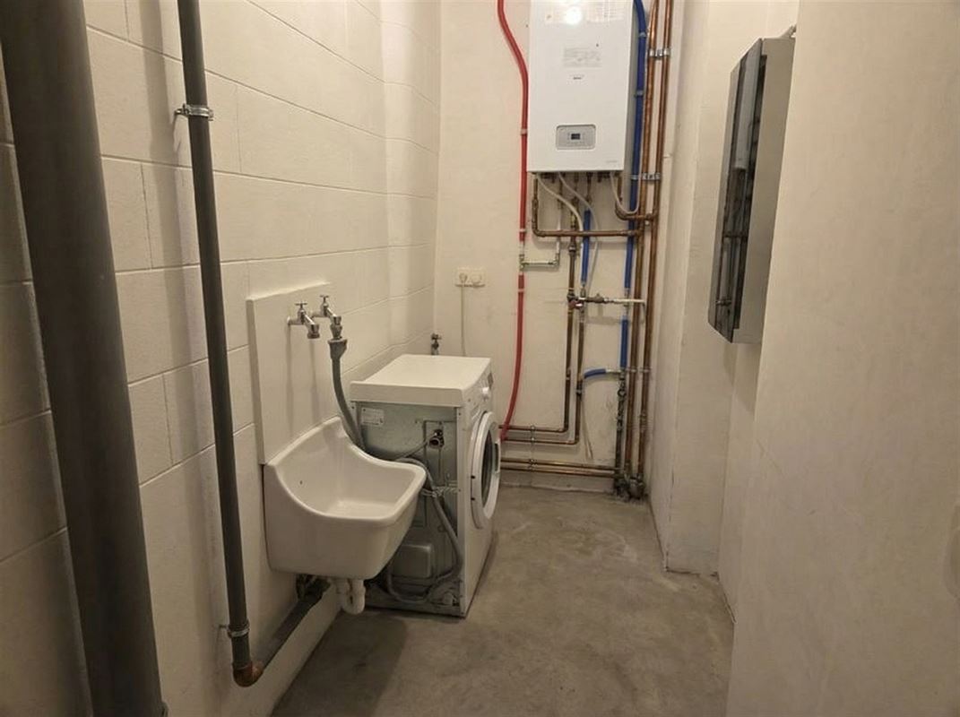Op de eerste verdieping geniet de woonst een ruime leefruimte met een gezellige open keuken waar een terras aan gekoppeld is, verder is er nog een toilet en berging .