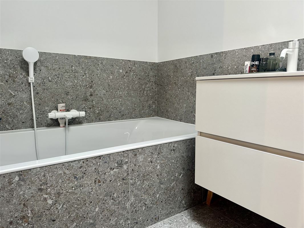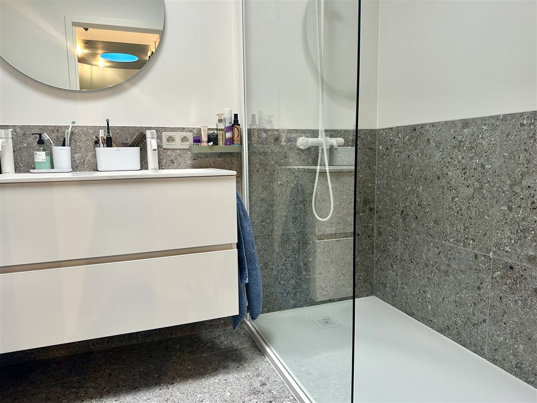 Op de eerste verdieping vindt u de nachthal, 3 slaapkamers, apart toilet, badkamer met inloopdouche, bad en dubbele lavabo.
