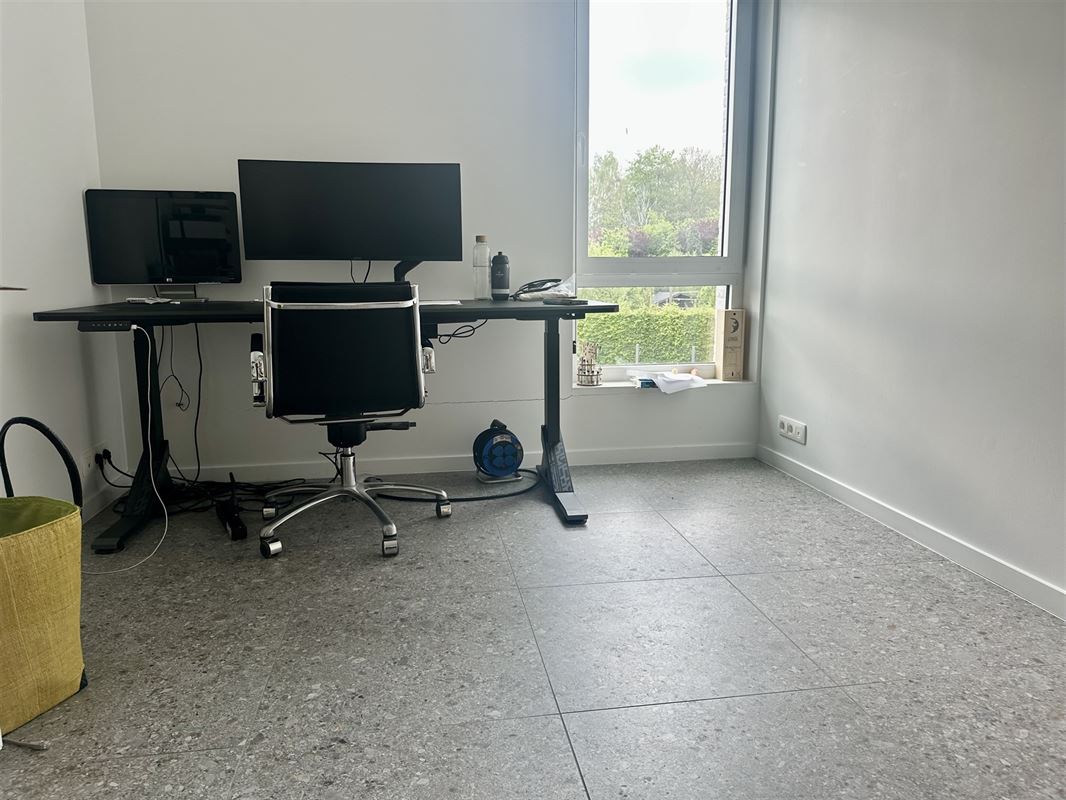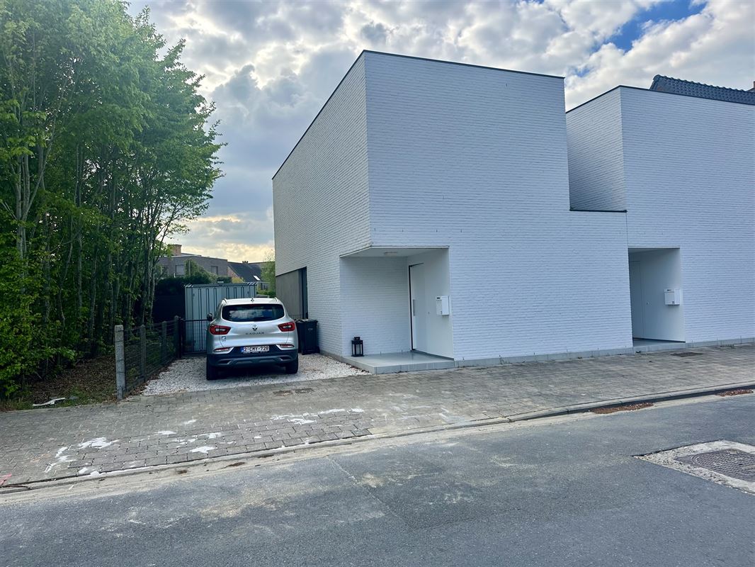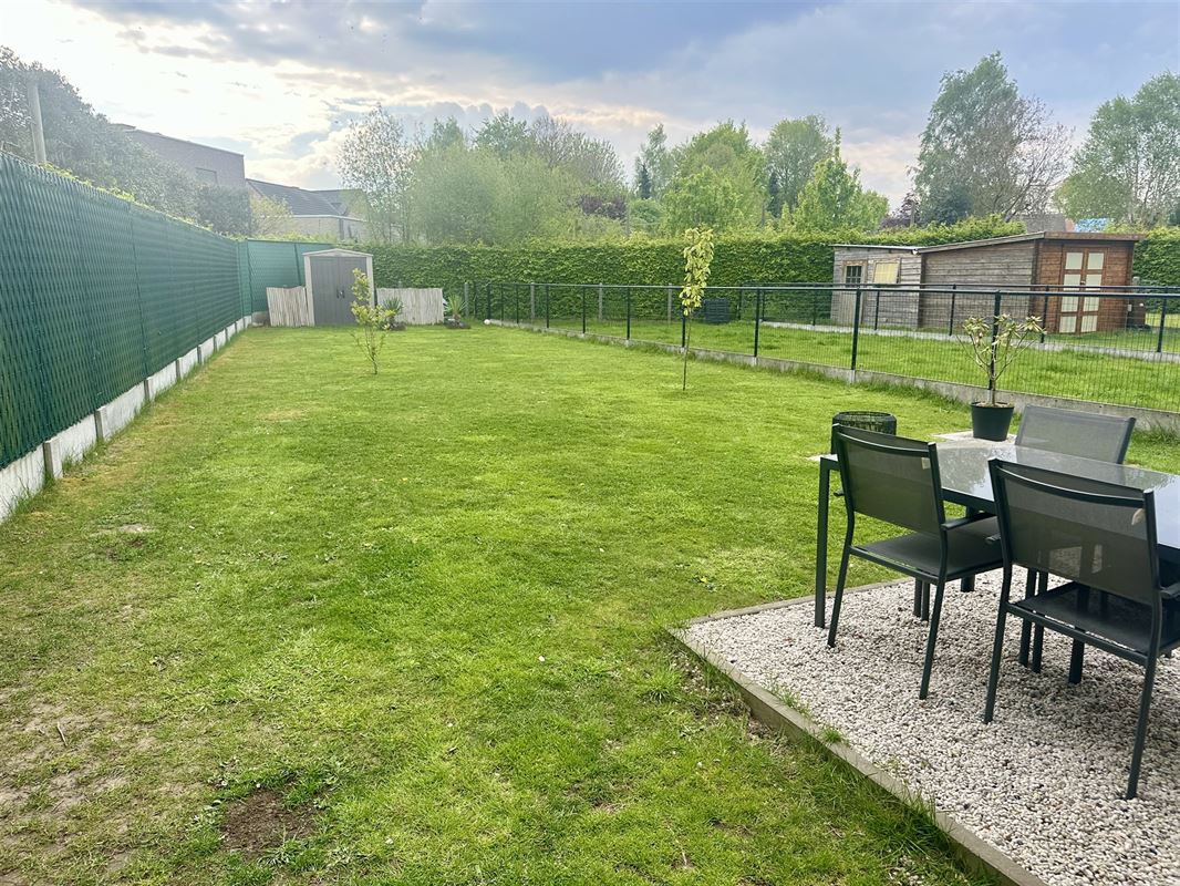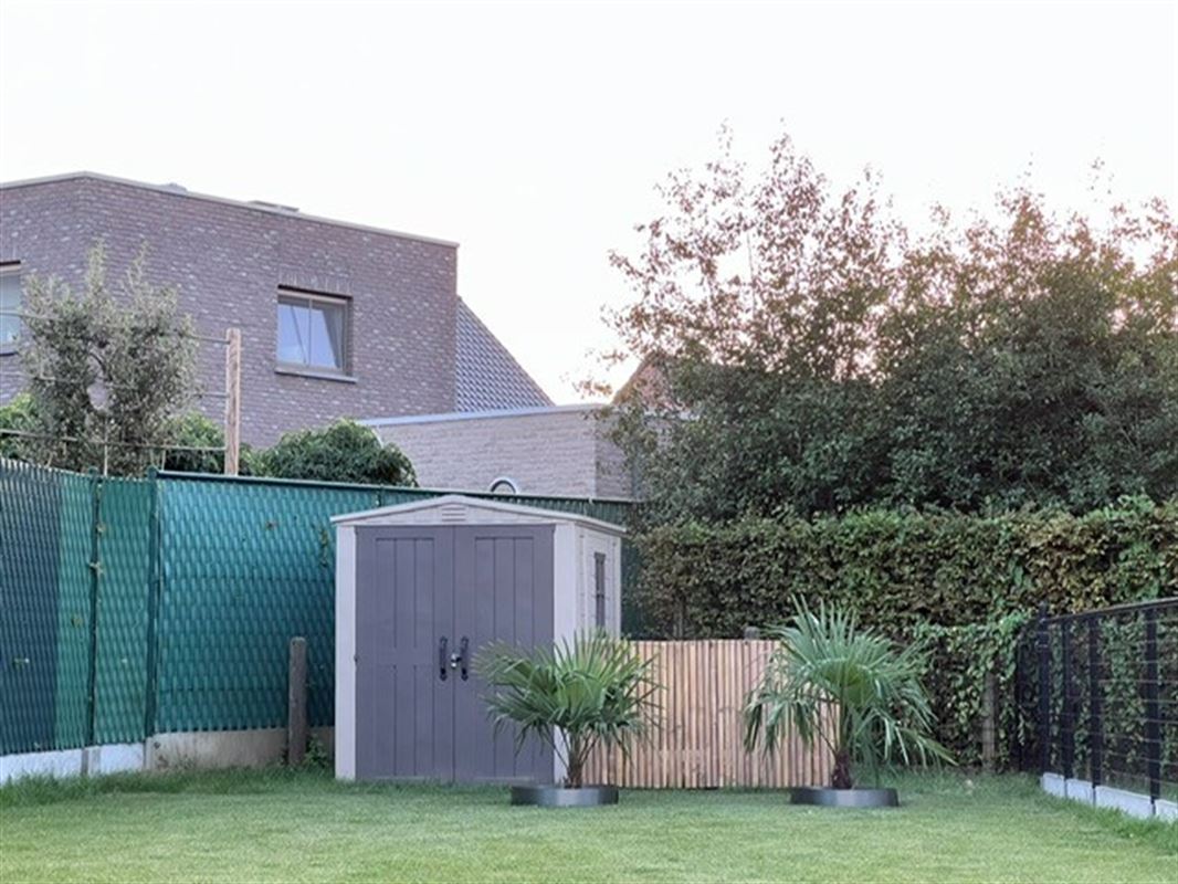 Buitenshuis : tuin met terras + privé parkeerplaats + een ruime fietsenberging!