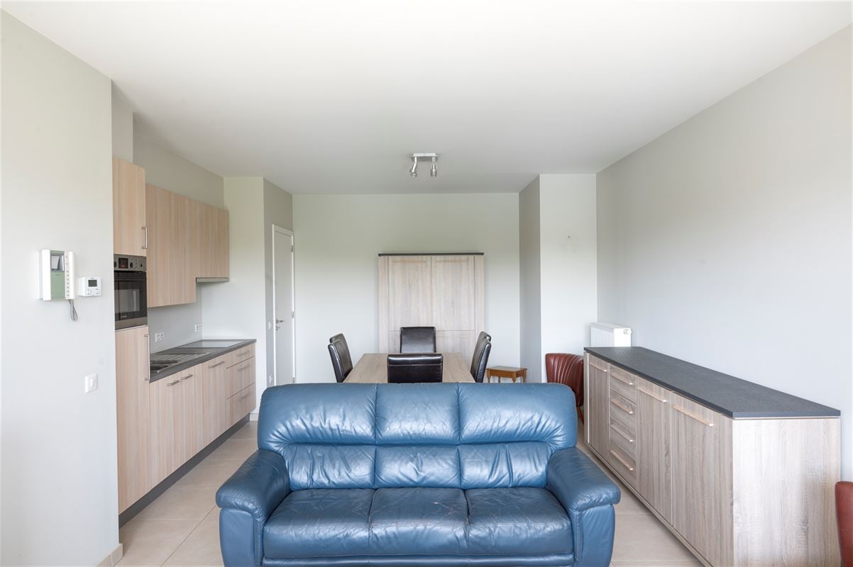 Langs de inkomhal met toilet en bijhorende berging kom je terecht in de living met open keuken.